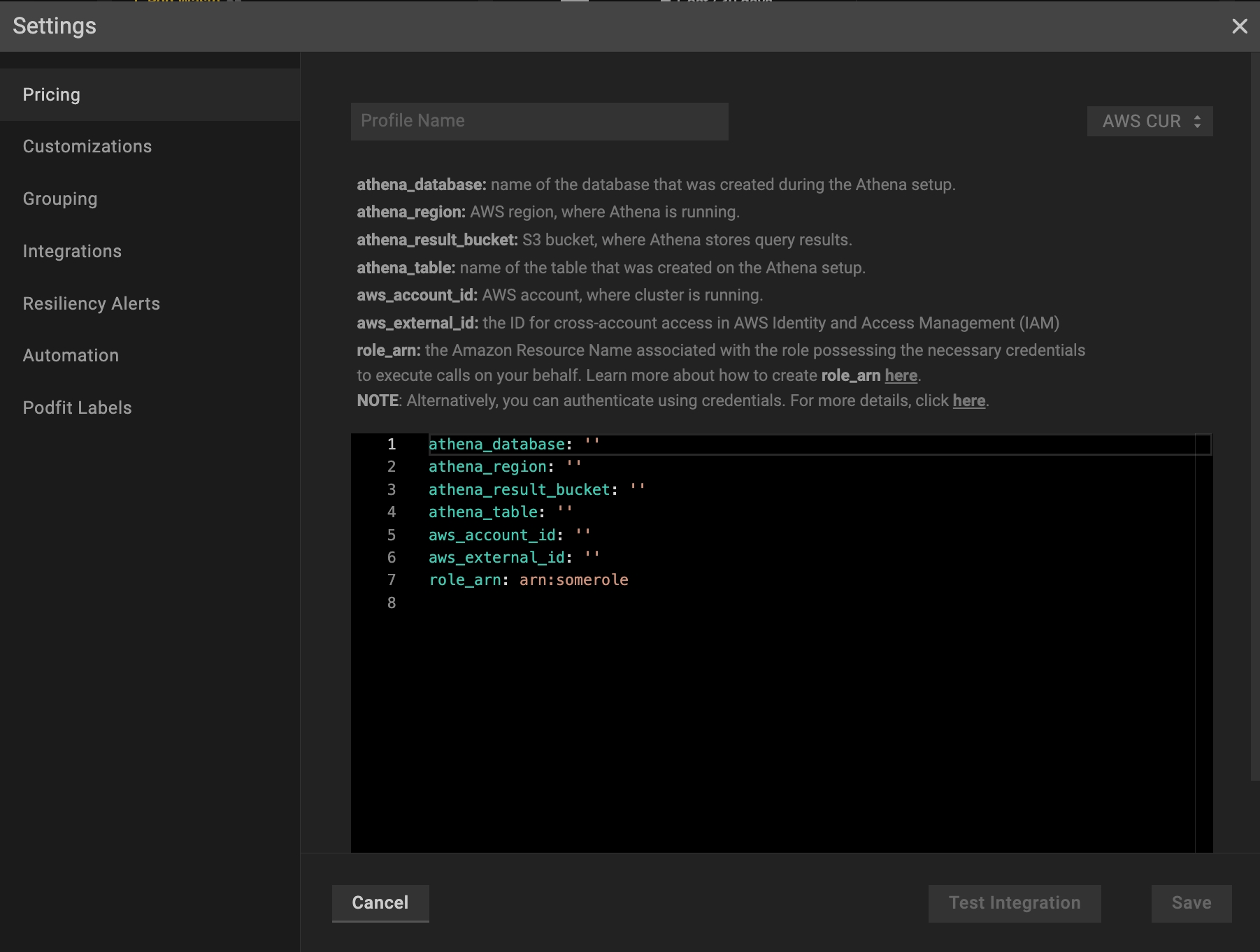 After enabling CUR, in order to start using the integration, you need to create a AWS CUR Pricing Profile and apply it to the desired cluster.