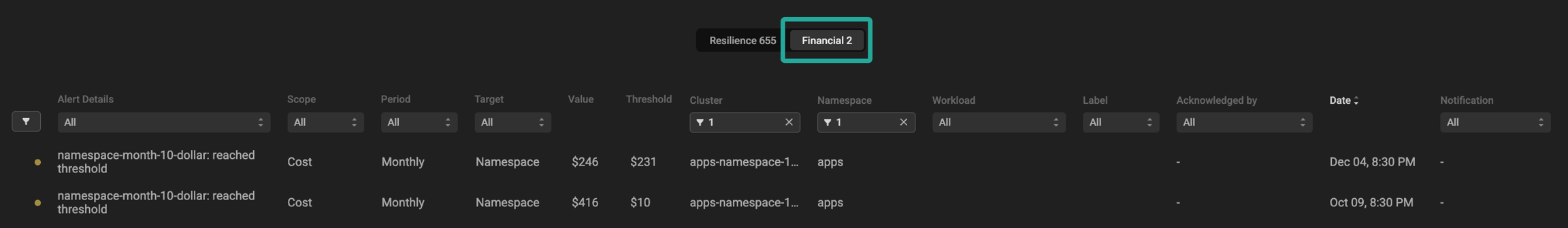 Get real-time resilience and financial anomalies alerts across your environment and address them before they impact your services