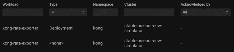 To acknowledge an alert, hover over it and click `Acknowledge`.