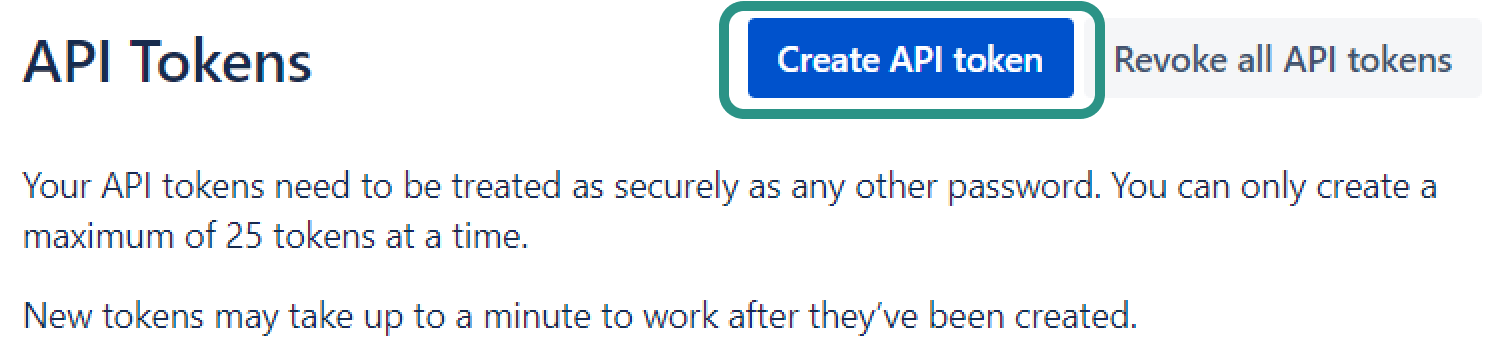 Create API tokenbutton.