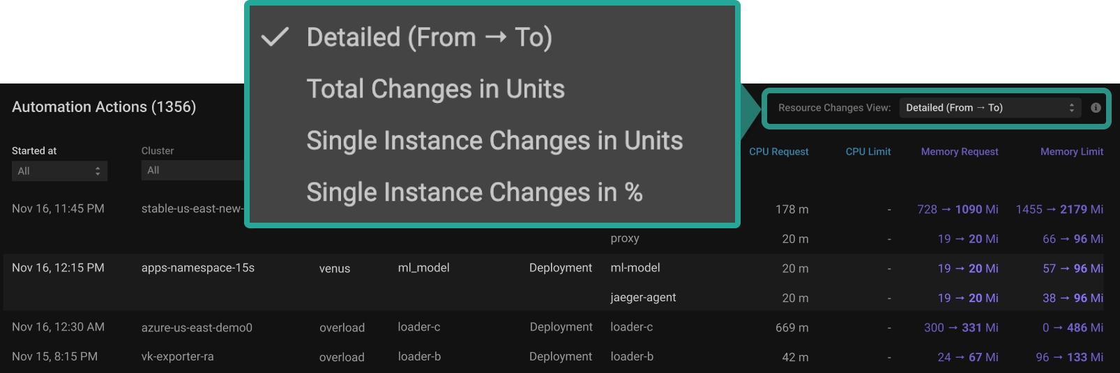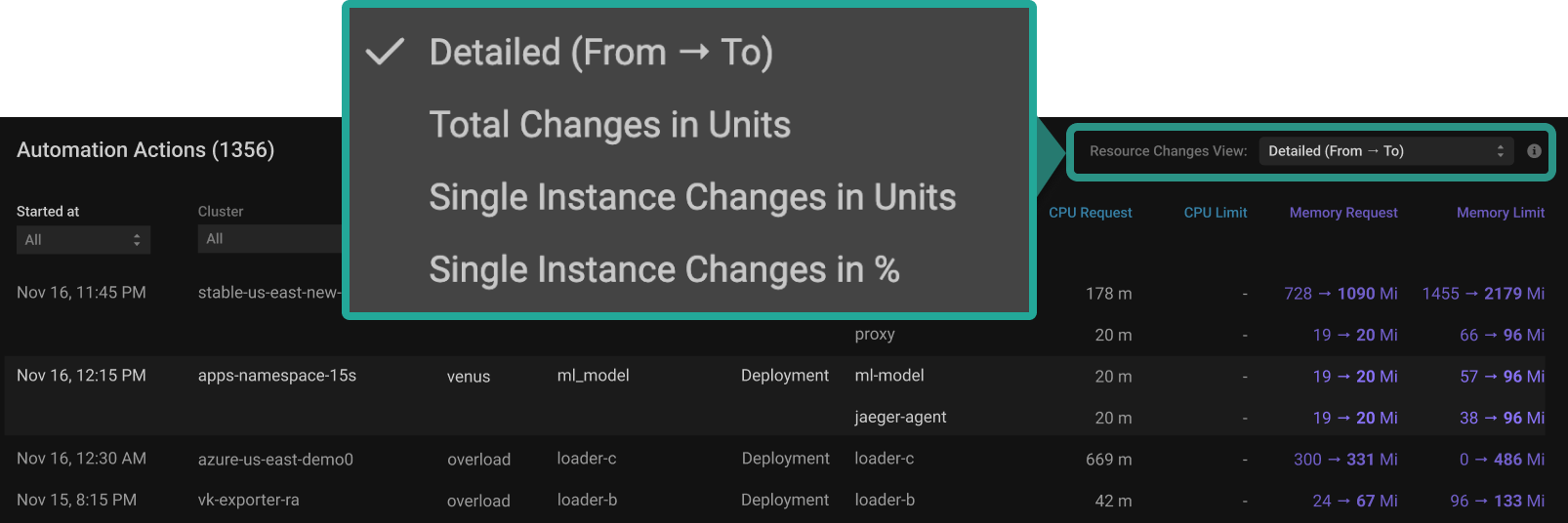 Total Changes in Units - to display changes made to resources as an absolute number, factoring in replica count.