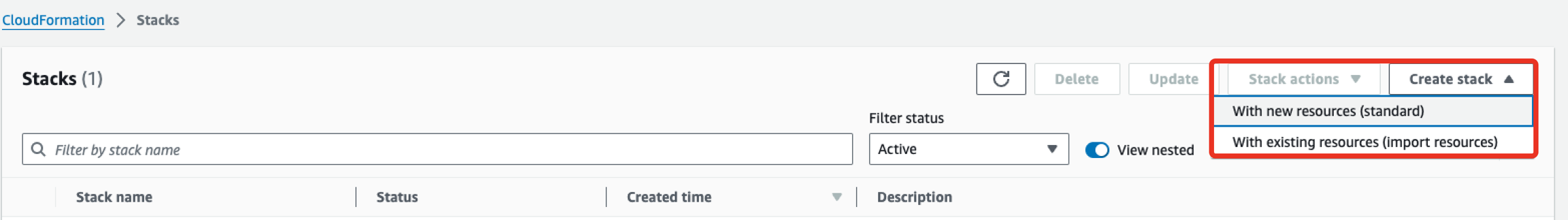 Create new stack Otherwise -