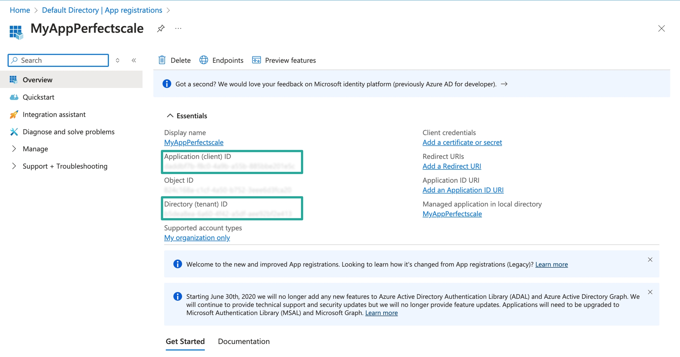 New app registration Enter a name for your application, for example, MyAppPerfectScale.