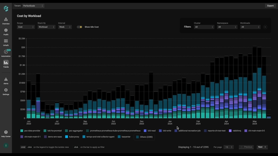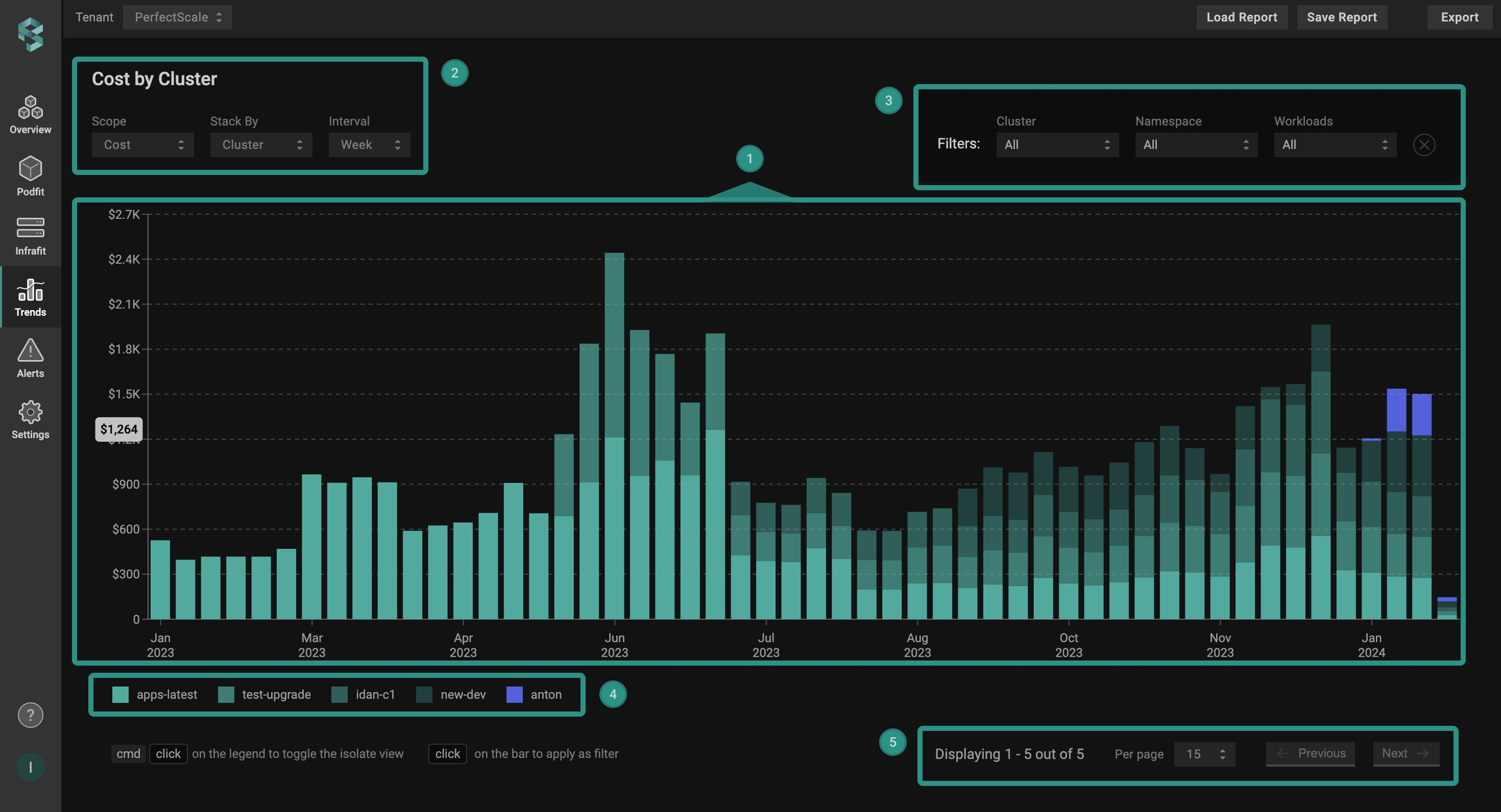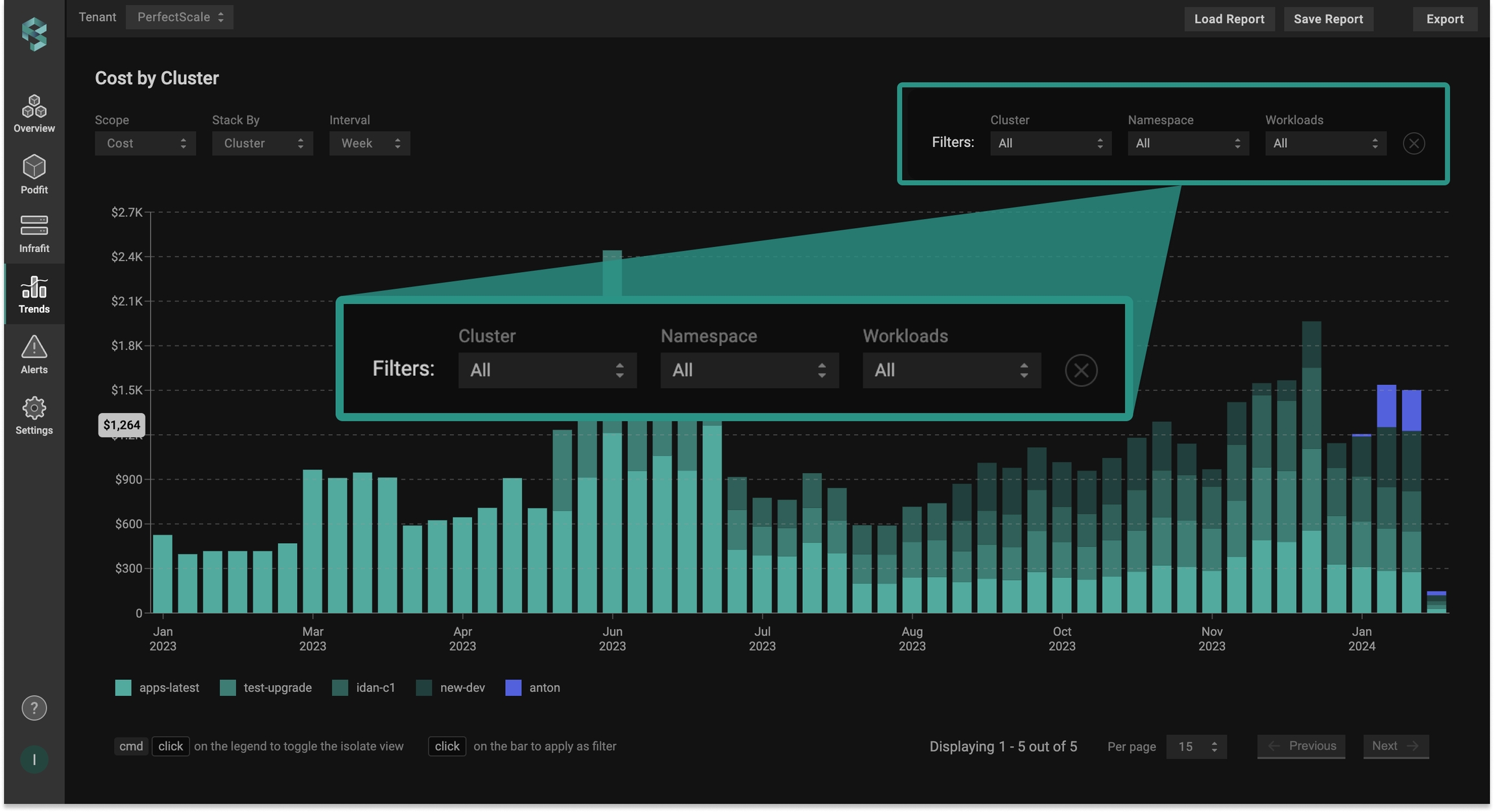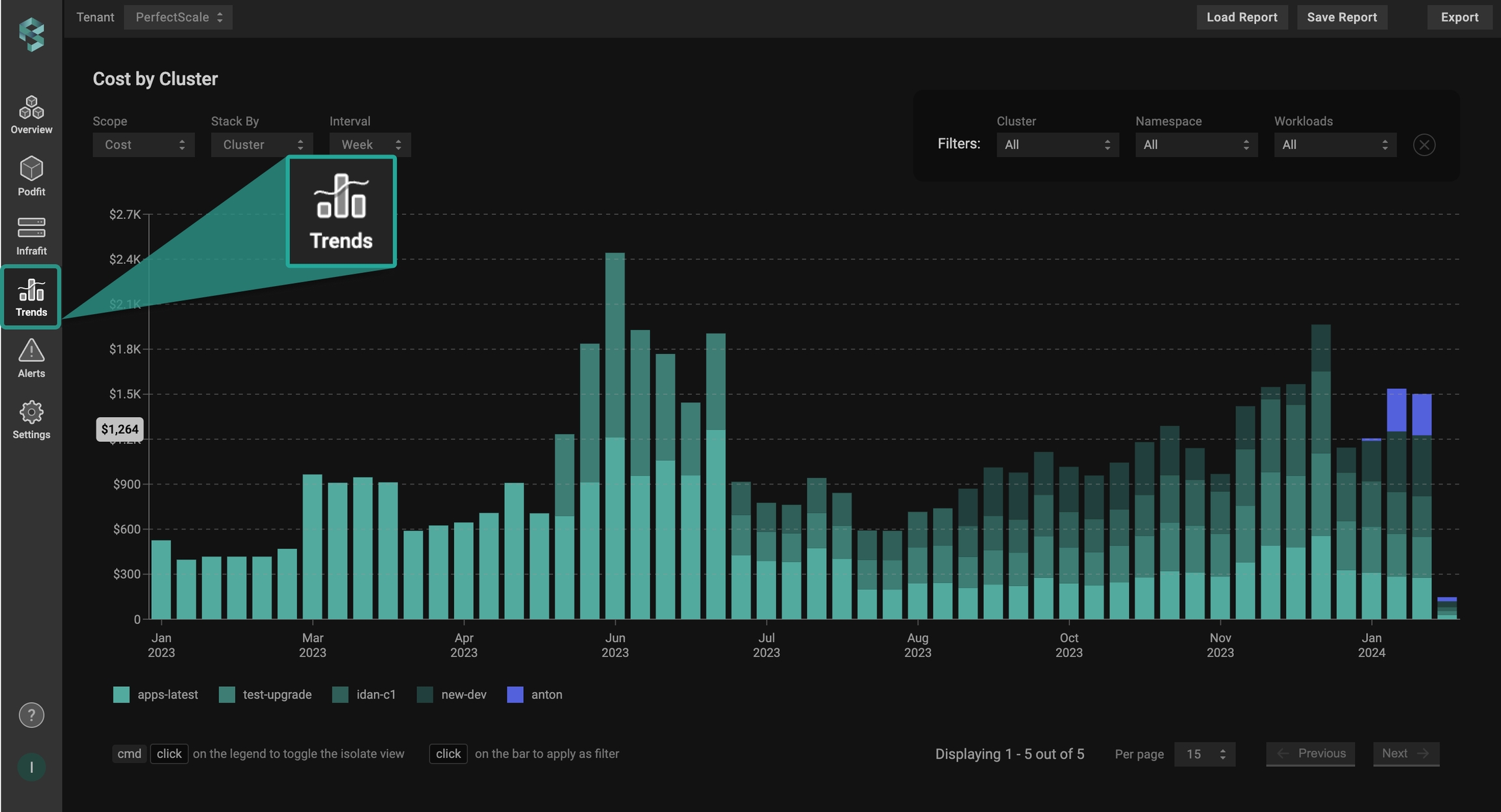 You can customize your Trends Report by choosing which clusters, namespaces, and workloads you want to include or exclude.
