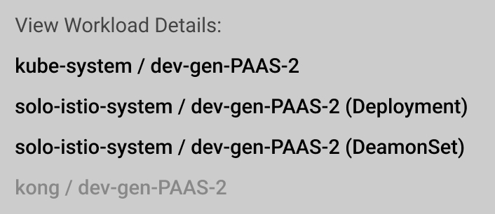 By clicking on a specific namespace from the list, a Zoom-in window of the workload in that namespace will open.