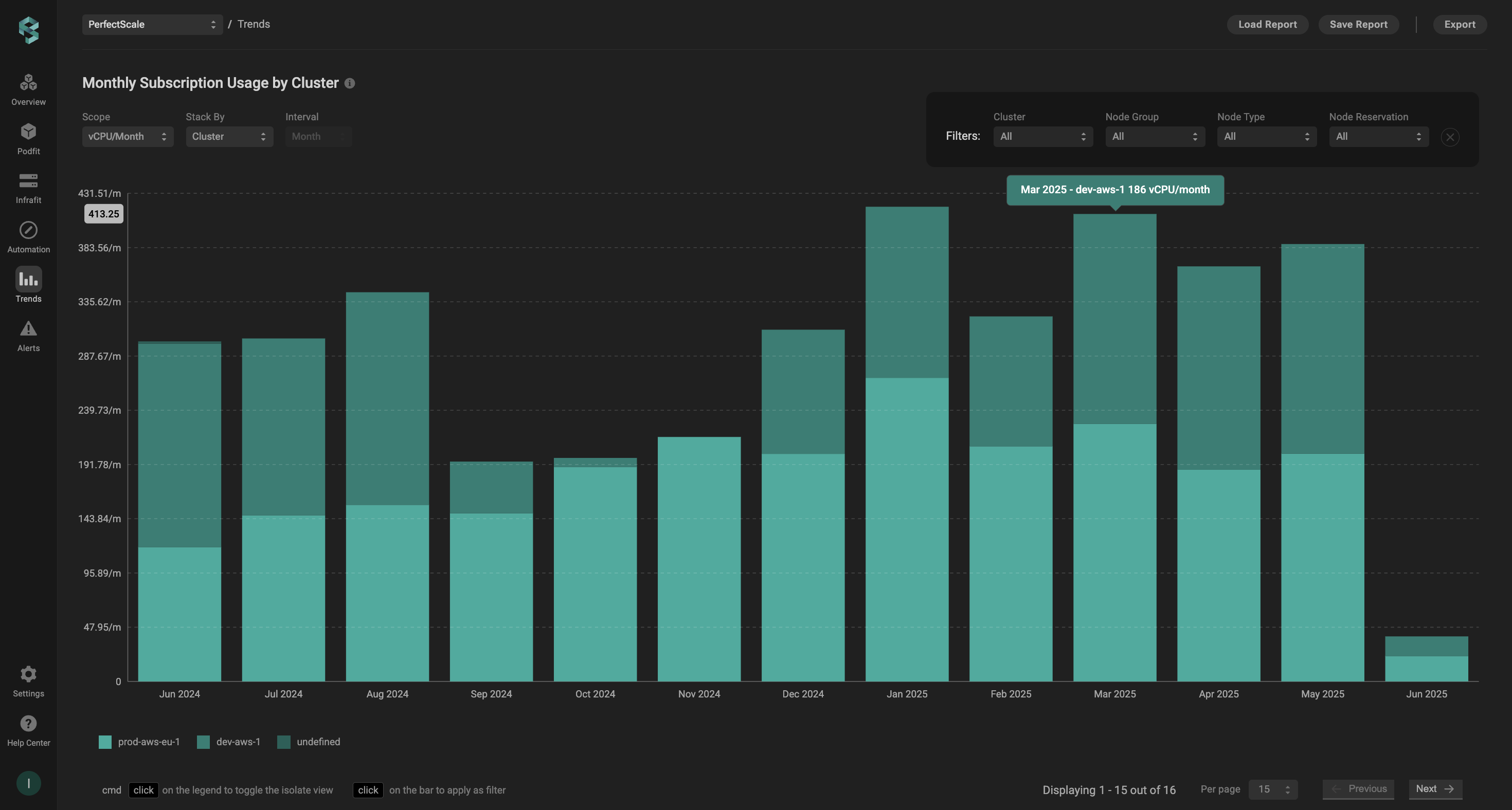 To provide a more accurate cost metric and improve pricing transparency, the PerfectScale solution is licensed by the monthly vCPU consumption of your clusters.